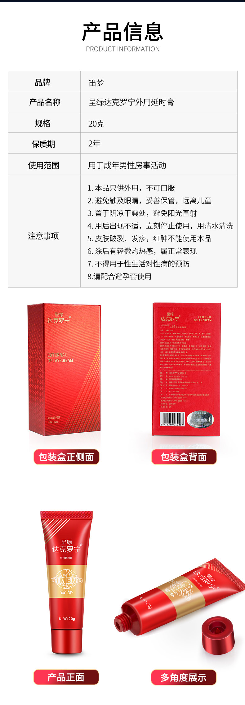 使用方法:房事前40分钟左右挤出取黄豆粒大小分量均匀涂于阴茎中部,龟头与冠状沟部位轻轻按摩,直至膏体看不见。注:避开尿道口涂抹。注意:戴套可以不需要清洗。
